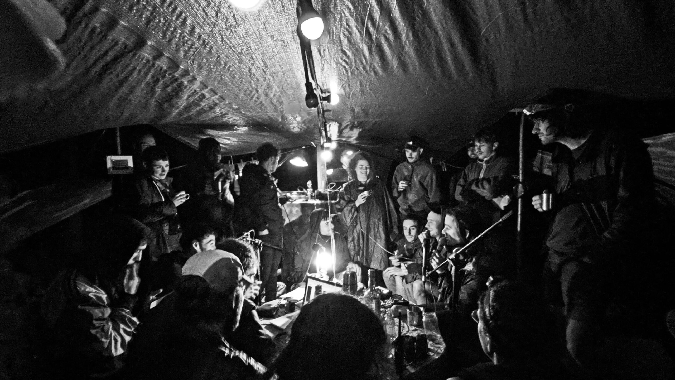 Construction en froissartage, confection de tarps et tuniques, radio pirate,